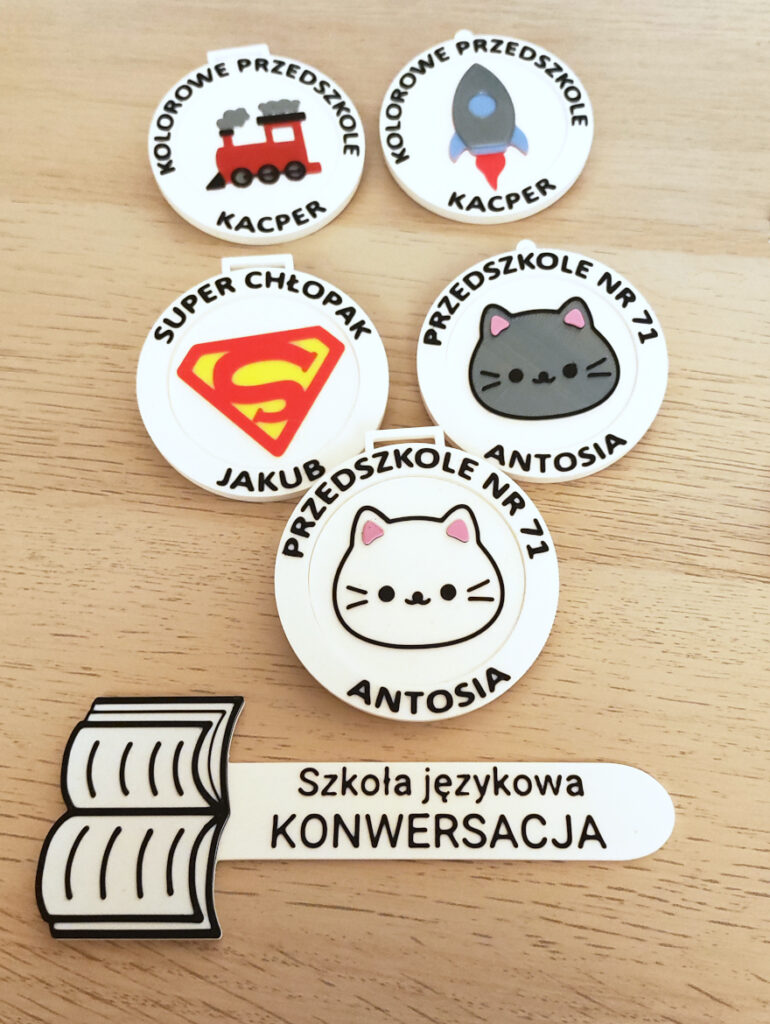 Poniżej znajdziesz przykłady wydruków – breloki, zakładki, akcesoria reklamowe, podstawki, akcesoria dekoracyjne, tabliczki informacyjne, medale, personalizowane dekoracje.